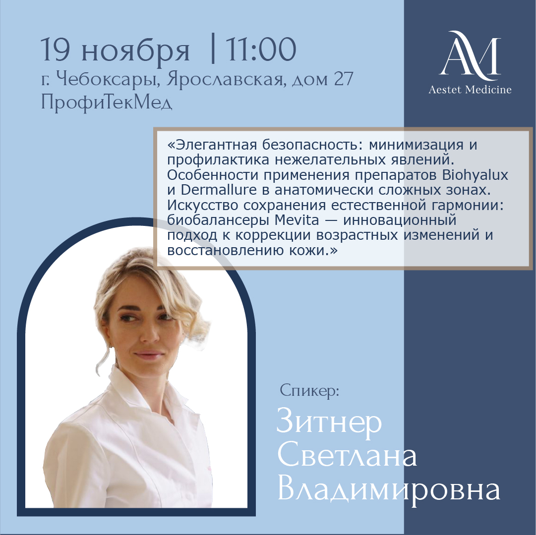 Тема: «Элегантная безопасность: минимизация и профилактика нежелательных явлений. Особенности применения препаратов Biohyalux и Dermallure в анатомически сложных зонах. Искусство сохранения естественной гармонии: биобалансеры Mevita — инновационный подход к коррекции возрастных изменений и восстановлению кожи.»