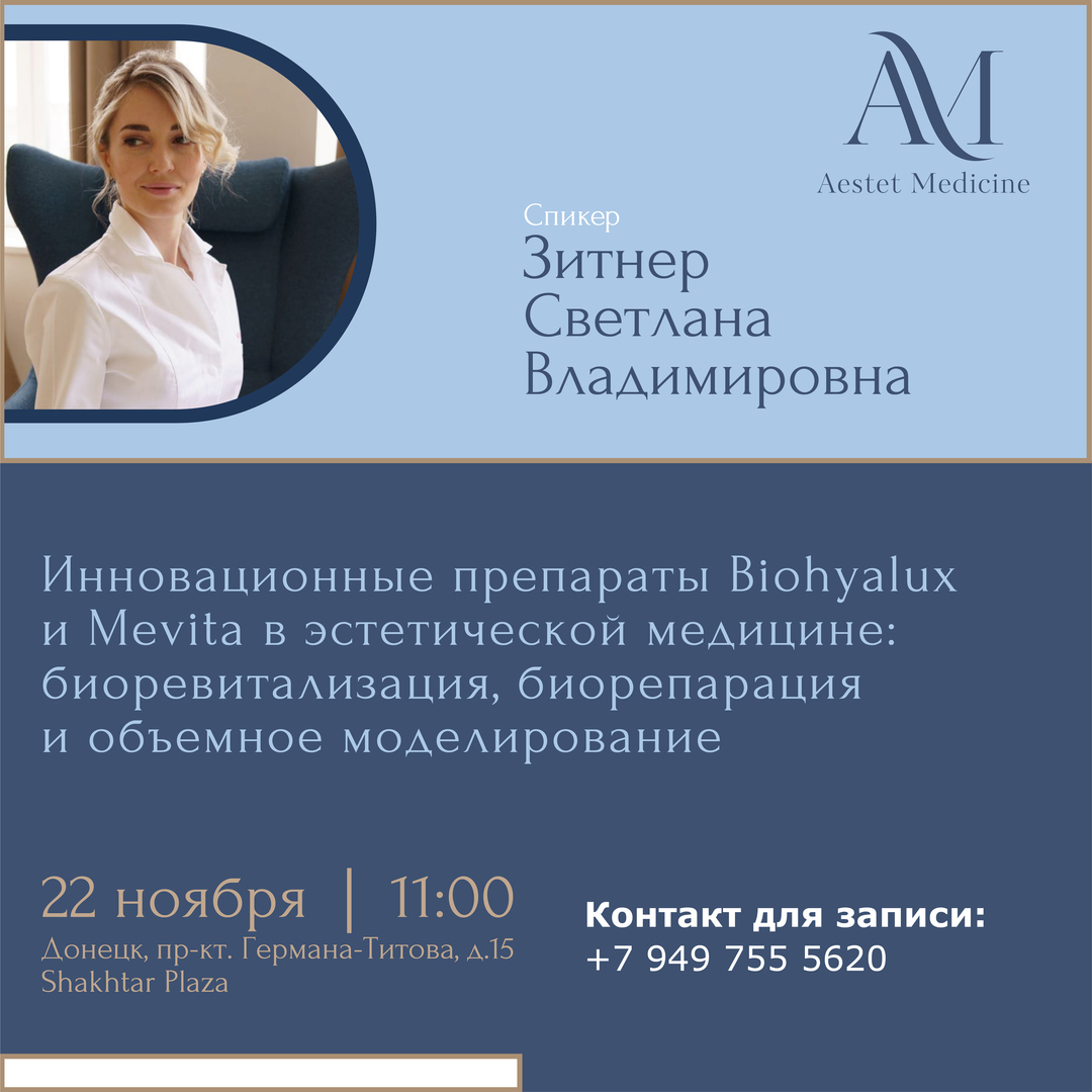 Тема: Инновационные препараты Biohyalux и Mevita в эстетической медицине: биоревитализация, биорепарация и объемное моделирование.