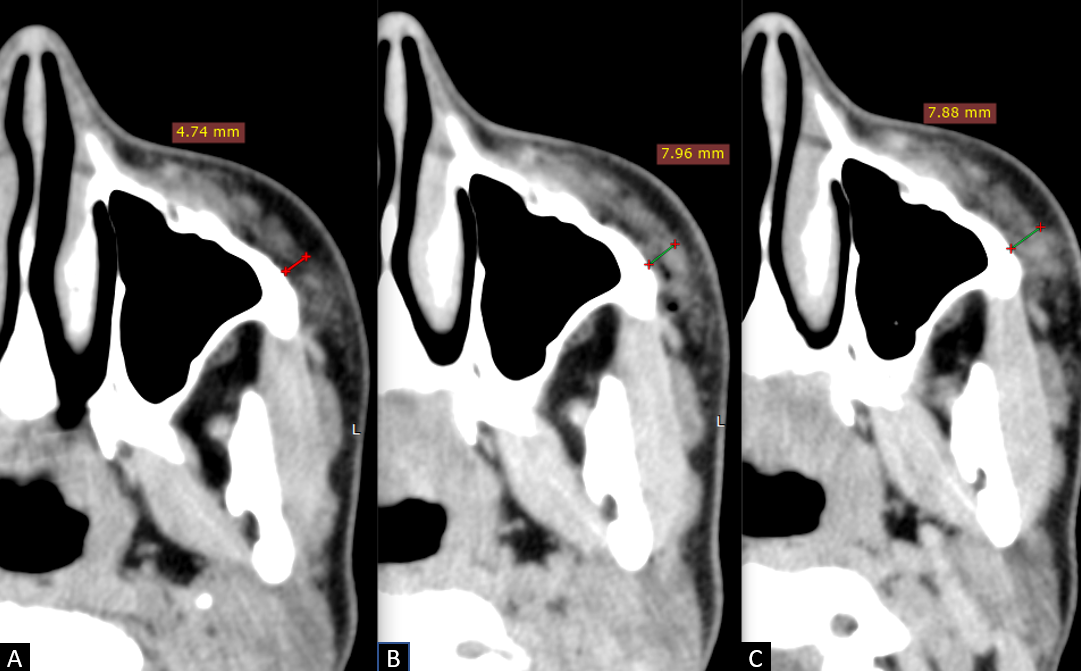 Контурная пластика лиц в практике врача косметолога, несмотря на минимальную инвазивность, сопровождается рисками сосудистых осложнений и отсроченных нежелательных явлений. Отсутствие стандартизированных методов визуализации распределения филлеров ограничивает возможности объективной оценки безопасности применяемых техник. В данной статье мы поделимся результатами full face коррекции пациента, которому до коррекции, сразу после и через 3 недели были проведены МСКТ челюстно-лицевой области в клиническом медицинском центре имени Н.А. Семашко ФГБОУ ВО «Российский университет медицины» МЗ РФ, с целью анализа техник контурной пластики. Так же данное исследование поможет оценить равномерность распределения препаратов сшитой гиалуроновой кислоты, отследить возможную их миграцию и превентировать ранние операционные осложнения. Для коррекции пациента мы выбрали наиболее часто используемые техники контурной пластики.