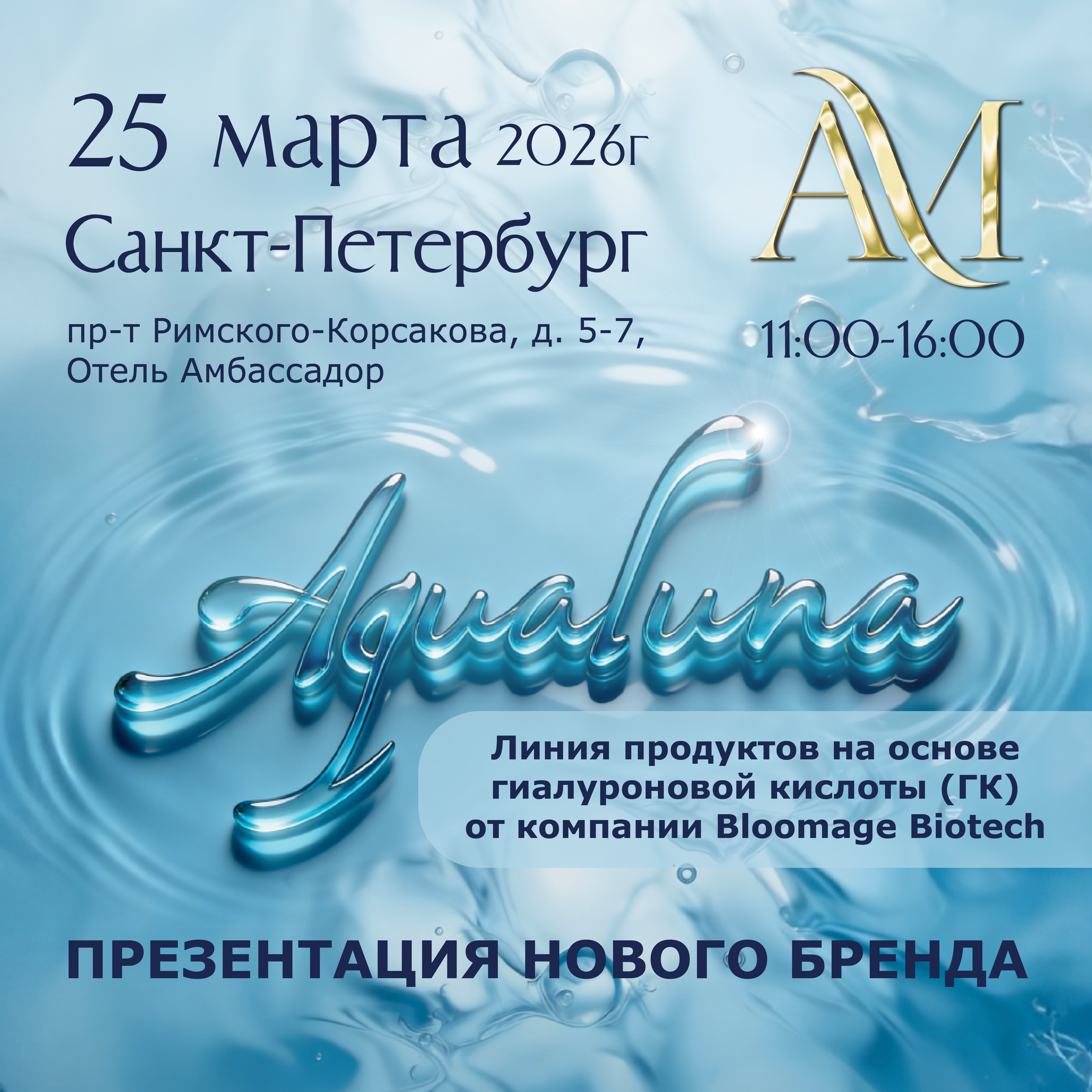 "Презентация нового бренда Aqualuna — линии продуктов на основе гиалуроновой кислоты (ГК) от компании Bloomage Biotech."