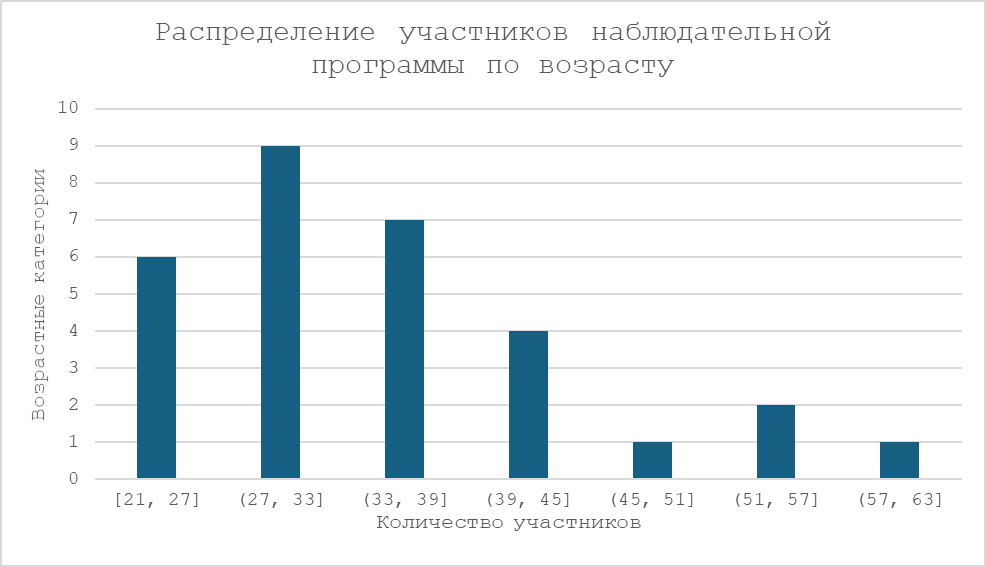 Диаграмма 2. Распределение участников наблюдательной программы по возрасту.